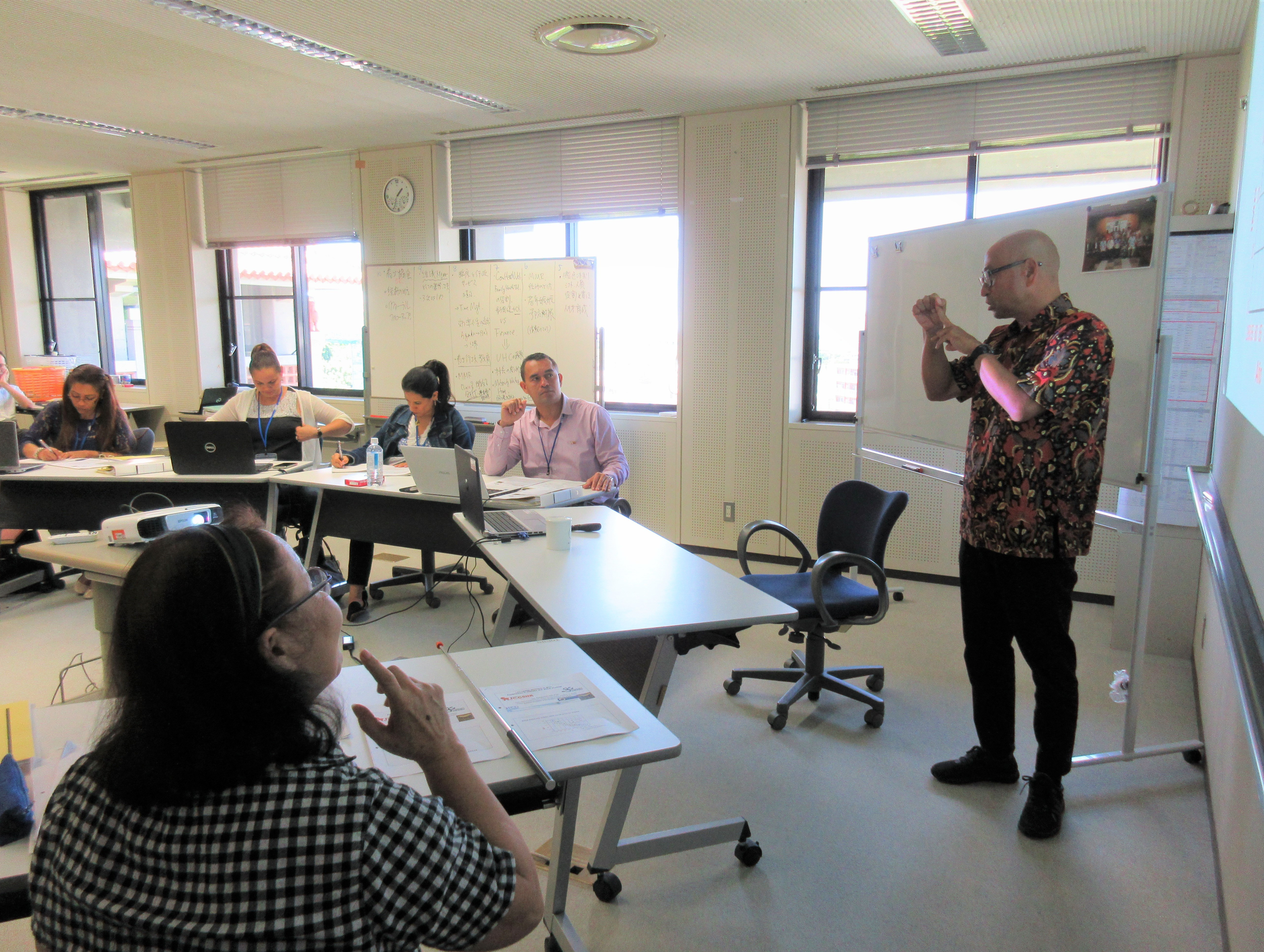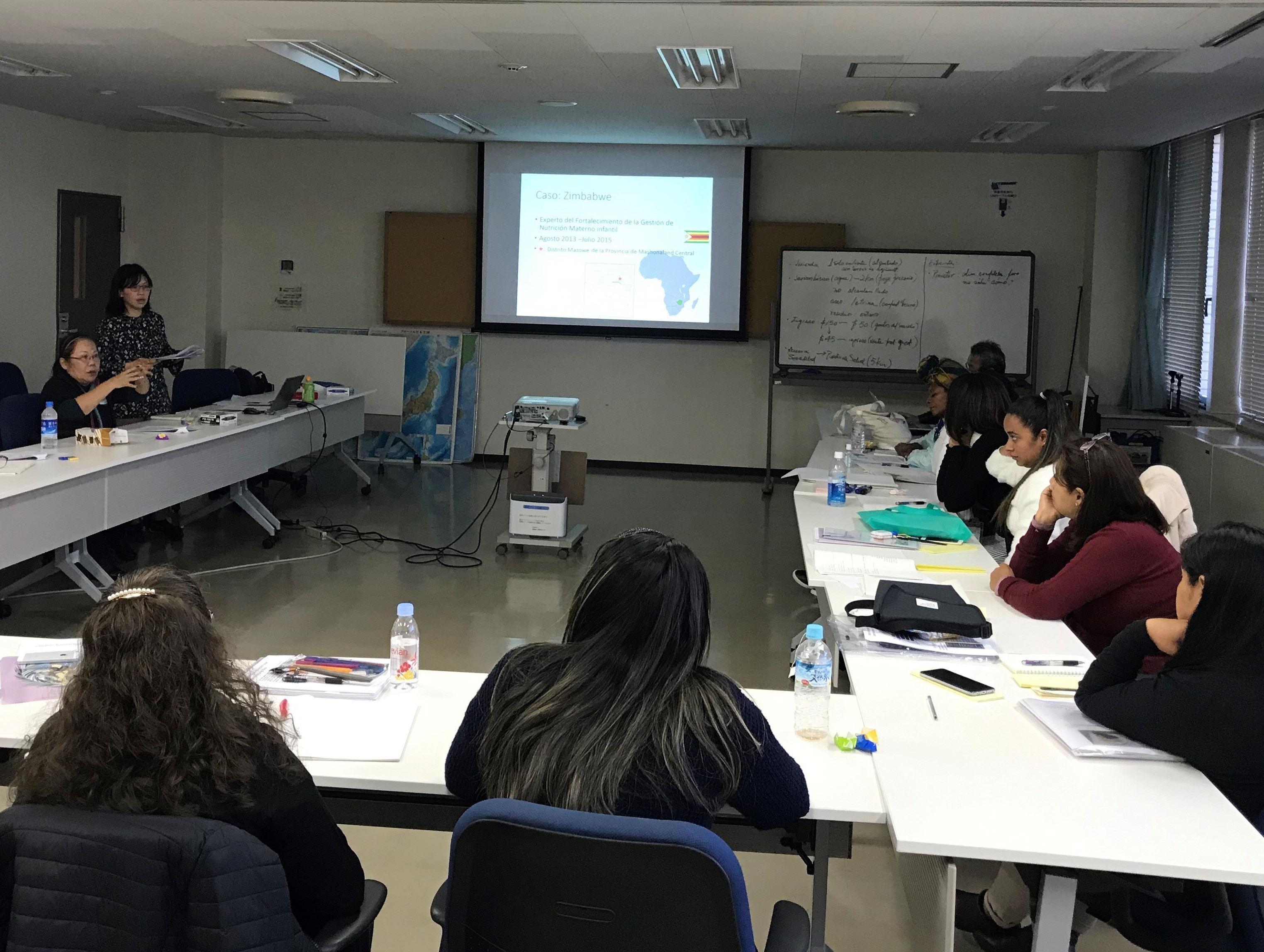 当社では、2018年度からJICA沖縄センターが実施する研修員受入事業「保健医療分野課題別研修」を受託し、琉球大学医学部保健学科国際地域保健学教室(小林潤教授)からの技術協力の元で実施しています。 沖縄県は、沖縄戦後の深刻な物資・人材不足の中で、母子の死亡率の大幅な低下を実現した母子保健の強化、マラリアなどの感染症の撲滅、ひいては離島部の国民皆保険の普及を実現させてきました。本研修は、沖縄・日本が有する復興期及び現在の保健システムを学び、これらの知見を活用して自国での母子保健強化や感染症対策の取り組みを推進していくことを目的としています。 2018年度は、課題別研修「公衆衛生活動による母子保健強化」を5回(英語2回、スペイン語2回、ポルトガル語1回)を「地域保健システム強化による感染症対策」(英語)を2回、「エビデンスに基づく公衆衛生計画立案」(英語)を1回実施しました。38か国から64名の研修員が参加しました。2019年度は合計7コースを実施し、39か国から55名の研修員が参加しました。 研修では、保健師の役割、母子健康手帳、母子保健推進員等のボランティアの活動、学校保健における養護教員の役割、感染症の情報システム、病院における院内感染対策、さらに世界の潮流や国際NGOのアドボカシー手法等を学びながら、アクションプラン(帰国後に実施する行動計画)を立てます。 また、Knowledge Co-Creationを促進する為 、各研修員が自国の公衆衛生活動について発表し、互いに学びあう機会を積極的に設けています。2019年度は、2018年度に参加した研修員(ナイジェリア、インドネシア、エルサルバドル)を現地のJICA事務所に招き、JICA-Net(テレビ会議システム)を通じてアクションプラン策定についてのアドバイスをもらいました。アクションプランの発表会は琉球大学で行われ、コメンテーターを務める教員やJICA関係者に加え、国際保健を専門に学ぶ大学院生との間で質疑応答や意見交換がされました。 研修員への技術移転に加え、地域の国際化も研修員受入事業の大切な目的です。保健人材として沖縄の将来を担う看護系大学・専門学校の学生は、インタビューや聴講を通して研修員と交流を深めました。また、県内の小中学校訪問も積極的に実施しました。毎年11月にJICA沖縄で開催されるおきなわ国際協力・交流フェスティバルでは、地元の浦添市民との交流も行われました。 多数の研修員を受け入れて、研修を実施することは、当社にとって大きなチャレンジでしたが、代表取締役がコースリーダーを務めるなど、一丸となって運営を行ってきました。母子健康手帳の普及、5S-KAIZEN-TQM、栄養改善、HIV/エイズ対策など、当社が海外の技術プロジェクトや国内研修で培ってきた経験も講義等で活かされています。