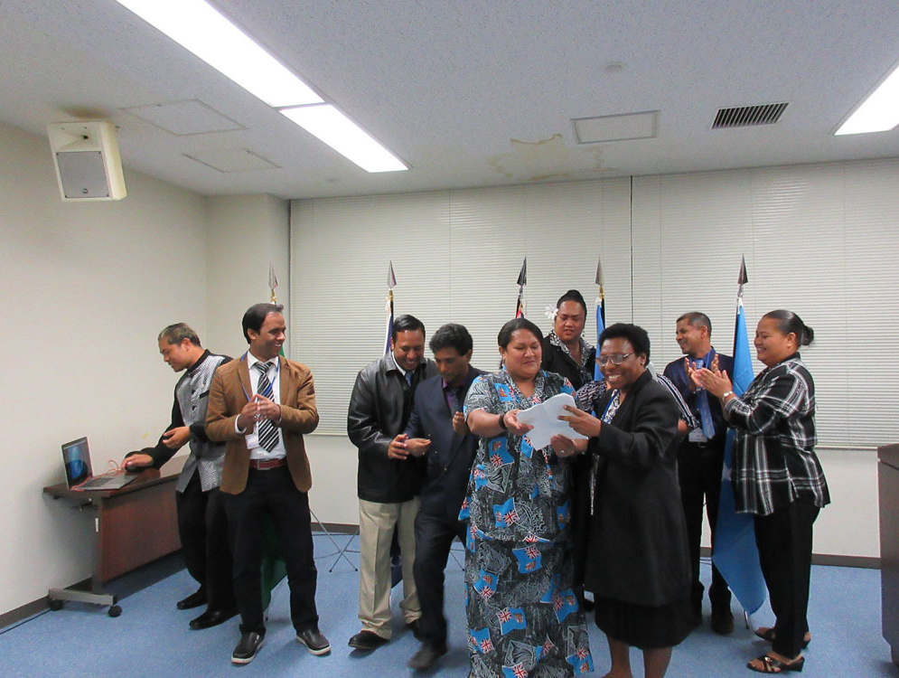 当社では、JICA九州国際センターが実施する研修員受入事業「アジア・大洋州島嶼地域 生活習慣病対策から学ぶ地域保健強化」を受託し、全3回(2015年~2017年)の研修を実施しました。 2012年の世界人口において、56億人中38億人の死亡要因を生活習慣病(NCD)が占めています。主な生活習慣病の病気としては循環器系疾患、がん、糖尿病、そして慢性肺疾患挙げられます。WHOによると、これらの病気は貧困の位置づけにある国々や低所得の人々に偏って流行が拡大している傾向があります。こうした国々では、低所得者層が感染症と生活習慣病双方への危険に晒されています。 本研修では、太平洋州(クック諸島、ソロモン、フィジー、キリバス、ミクロネシア、マーシャル諸島、ミクロネシア、ナウル、パプアニューギニア、サモア、バヌアツ、パラオ)とアジア(バングラデシュ、スリランカ、ベトナム、ミャンマー)から合計29名の研修員を受け入れました。 16日間の研修のなかで研修員たちは、講義や演習、奄美大島への視察旅行、保健行政機関や医療施設を視察し、生活習慣病対策を学びました。 離島診療所や住民ボランティアによる生活習慣病対策の取組みを視察した奄美大島への視察旅行では、奄美八月踊りを通して地域住民との交流を深めました。その様子は奄美大島の地元新聞でも報じられました。 研修員は、この研修での学びの成果を帰国後に自国でのそれぞれの業務に活かすため、活動計画をとりまとめ、JICA九州国際センター発表会において同計画の発表を行いました。