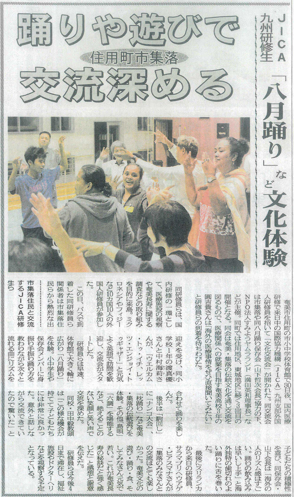 奄美市住用町での八月踊りが地元新聞に掲載された(2016年度)